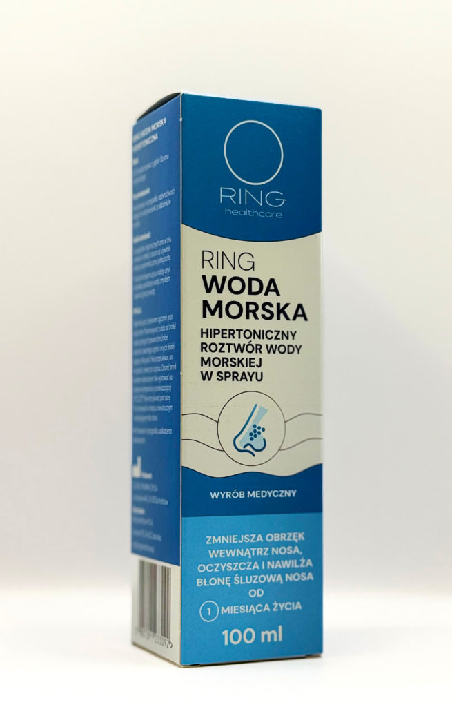 RING Woda Morska Hipertoniczna to wyrób medyczny w postaci sprayu do nosa, oparty na naturalnej wodzie morskiej z głębin Oceanu Atlantyckiego, bogatej w cenne minerały i mikroelementy. Opracowany z myślą o codziennej higienie nosa oraz wsparciu w przypadku niedrożności, infekcji i suchości błony śluzowej.